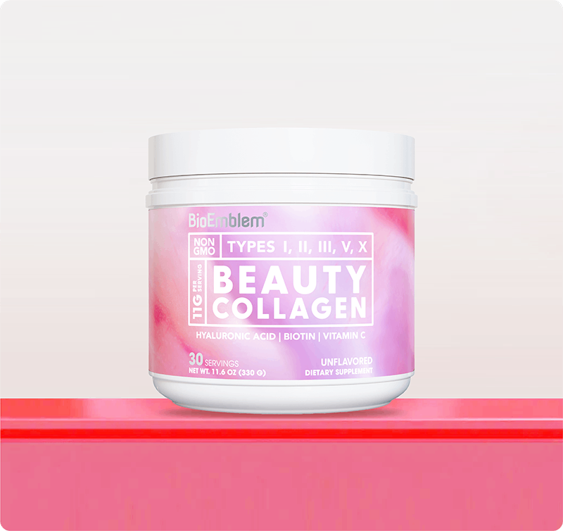 产品含五种胶原蛋白(I、II、III、V、X ),来源于水解牛、鱼、鸡和蛋壳,为皮肤、关节、头发和指甲等提供全方位支持。